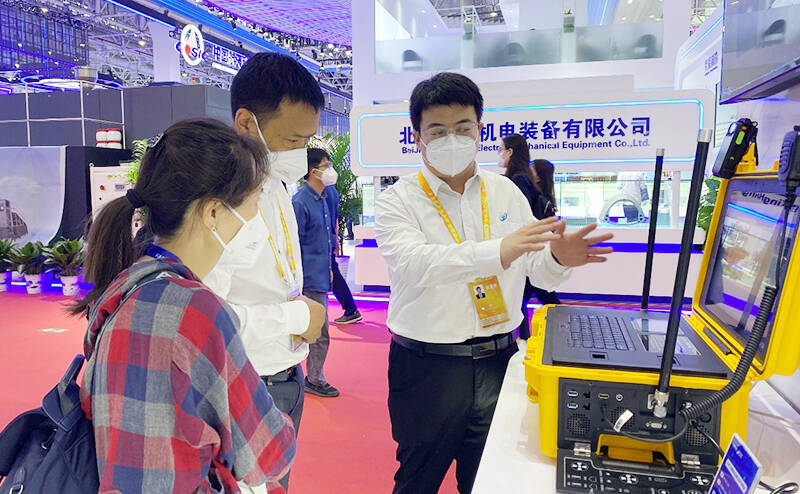 北斗天地展台的主要“明星产品”—无线自组网应急通信指挥保障箱,受到了参展嘉宾和各界媒体的高度关注。它融合了宽窄带自组网、融合通信技术、软件调度平台、脱网APP以及多个物理接口,采用可视化图形调度界面和触摸屏式操作,在没有基础网络设施或者突发事故现场快速搭建起一套集语音、视频等数据传输为一体的调度指挥平台,可最大程度满足应急通信业务需求。目前这套装备主要应用在煤矿安全事故、自然灾害现场,充分展现了公司在“北斗+”领域、矿山工业智能化行业的创新能力和制造水准。