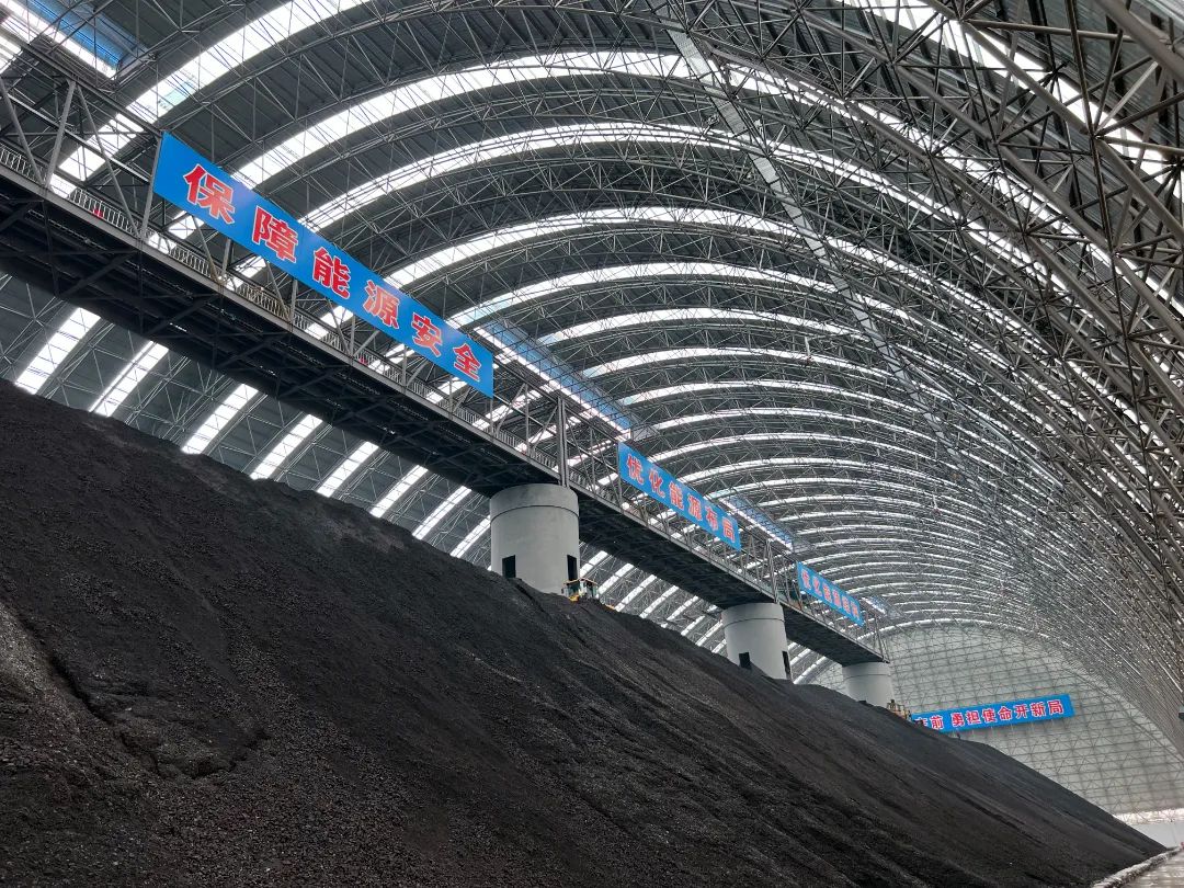 ▲ 鲁西储配煤基地曹庄园区煤棚室内