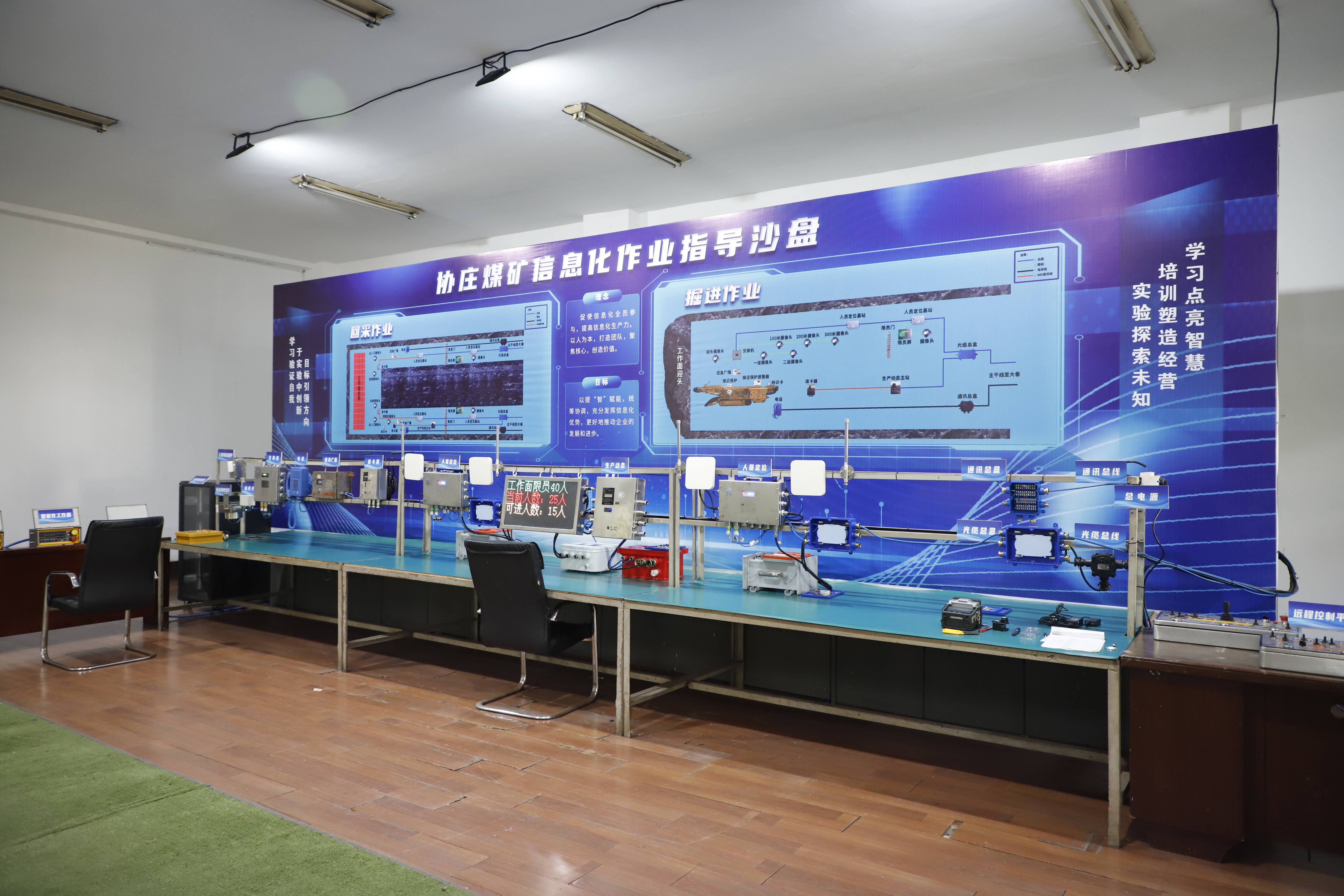 秉承“全员参与信息化进程,驱动生产力飞跃”的理念,协庄煤矿利用闲置房屋和设备资源,创建信息化实验室,将人员定位、生产监测、应急广播、调度通讯、人员接近保护机制、视频监控、智能工作面操控七大系统深度融合、相互联动,100%模拟井下生产作业环境,打造技术创新和人才培养的实践平台。