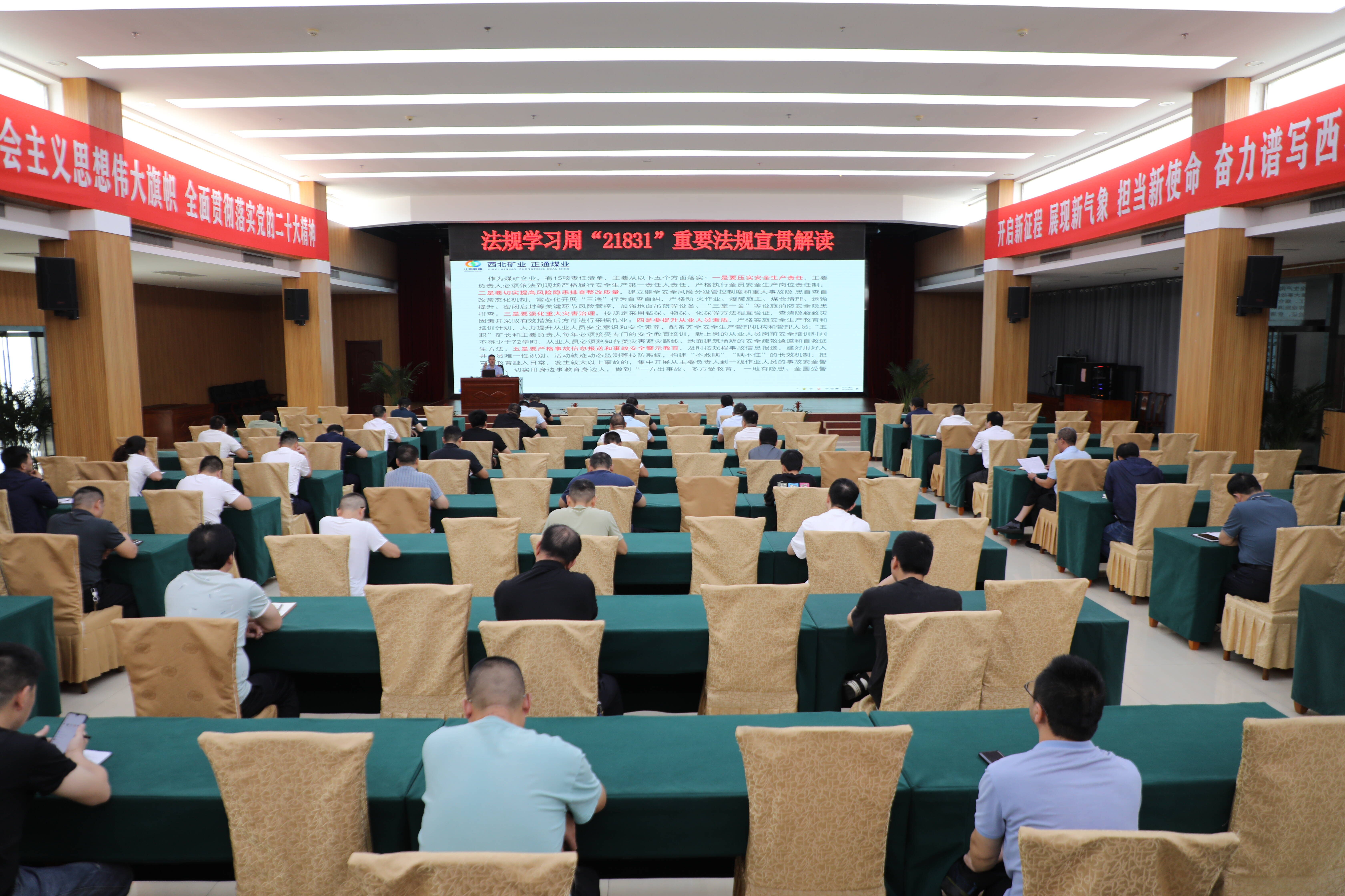 该公司以法规文件学习周为契机,制定下发《“21831”重要法规文件学习周活动方案》,采取“集中+分众+自学”相结合的方式,“点线面”齐发力助推全体从业人员对“两办”《意见》《煤矿安全生产条例》《八项硬措施》《安全生产治本攻坚三年行动方案》和《煤矿重大事故隐患判定标准》进行再学习、再培训、再考试。
