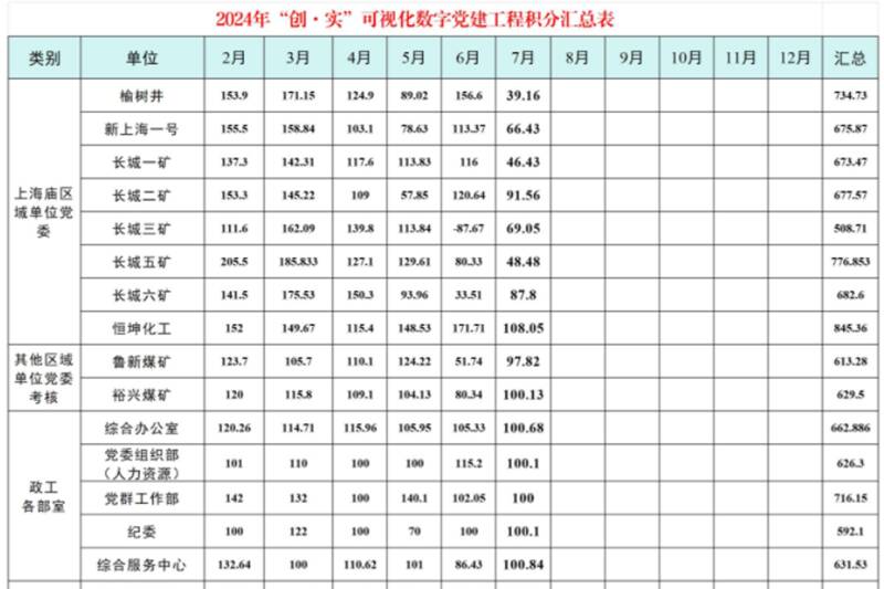 (“可视化数字党建工程”部分单位、部室积分考核)