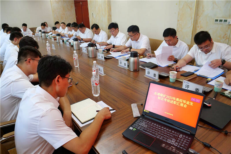 8月29日,东滩煤矿召开2023年高校毕业生转正考核汇报会,26人依次上台,讲述一年来的工作经历和下步工作打算。