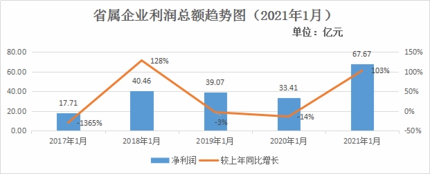 2021年1月份,纳入财务快报的24户省属企业经济运行呈现收入规模稳定攀升、资产质量稳步提升、盈利能力持续向好的“两升一好”特点。