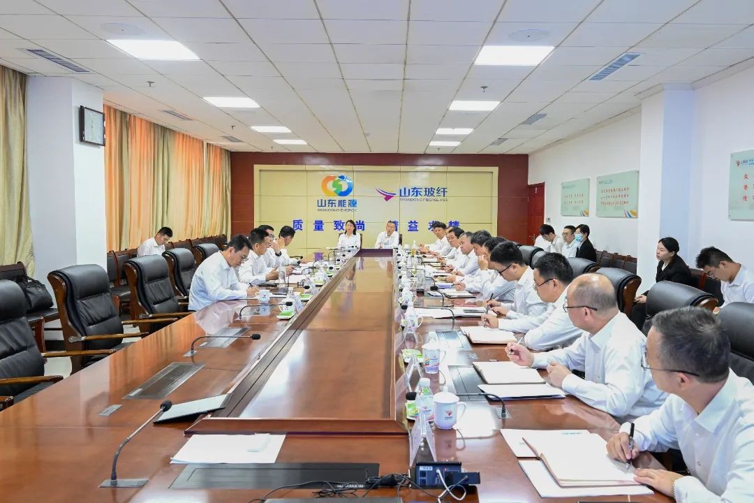 7月29日,新材料公司学习型党组织建设“培训归来话改善”回访团走进山东玻纤,检验学习型党组织培训成果转化情况,北京明德经纶管理科学研究院院长王蠡、副院长金锋,山东玻纤党委书记、董事长张善俊及在家班子成
